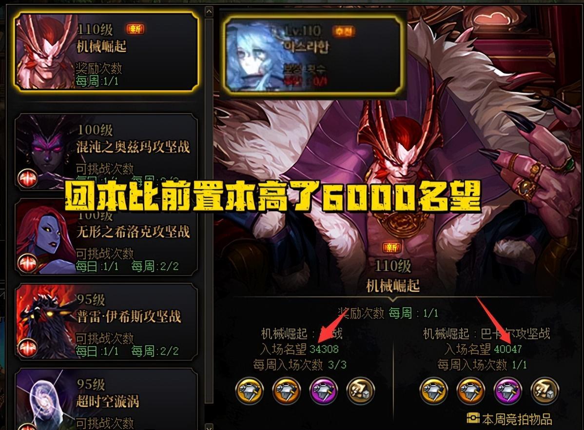 【核心內容】進場門檻54726名望、每月副本、輪換模式、超高難度、自定義減負!