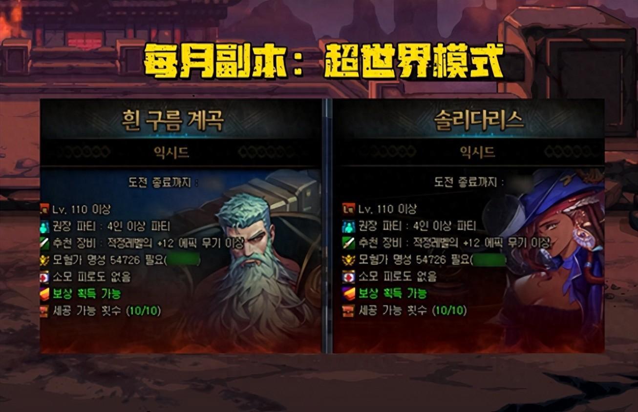 簡單介紹一下“超世界模式”,這應該是地下城首個真正意義上的“月本”,指的是每個月只需要通關一次、拿一次獎勵即可。