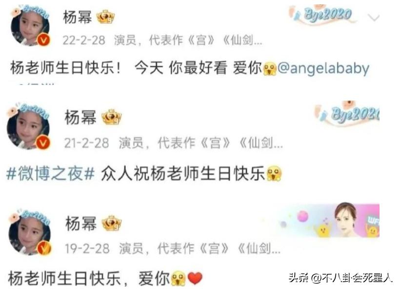 楊冪曾連續4年爲楊穎發動態慶生,楊穎也連續多年爲楊冪慶生。