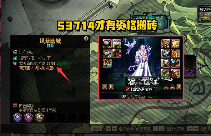 爲什麼要重點強調53714這個名望點呢?因爲,它就是最新一週風暴幽城的進場門檻!