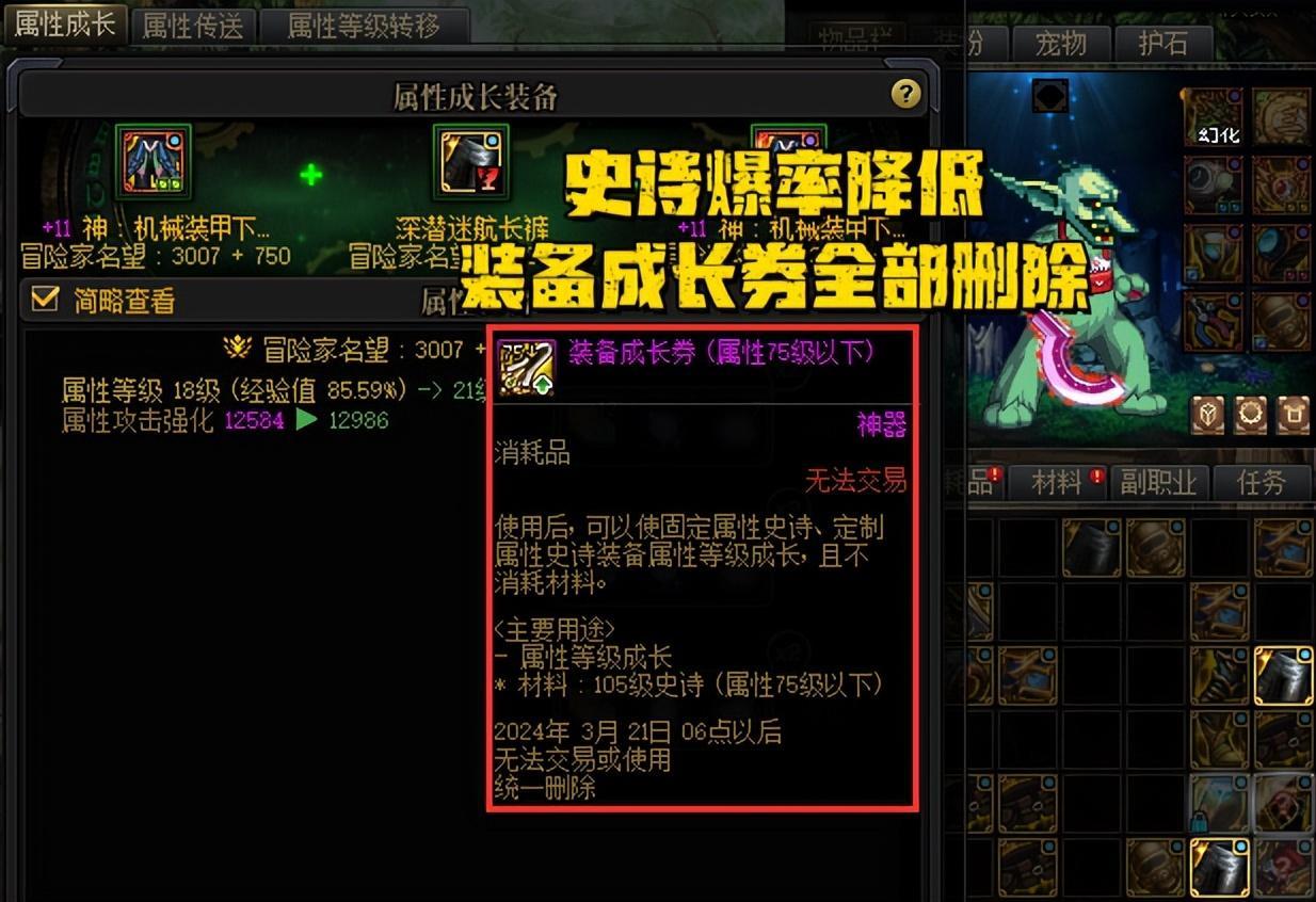 DNF:3月份餵養系統改版!成長券刪除,史詩爆率大降低