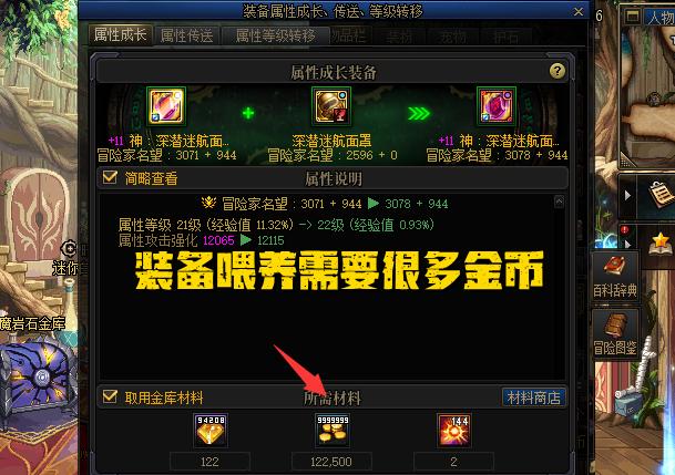 雖然說餵養一件裝備的金幣不算多,十來萬金幣就夠了,但是大家別忘了,餵養裝備可是一個長期持續的操作;