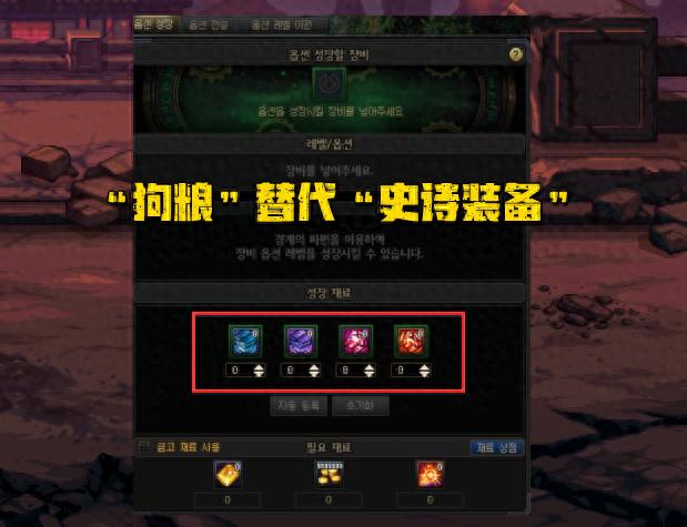 目前我們餵養一件裝備需要用到「史詩裝備+金幣+金綠柱石+靈魂之源」,或者「史詩裝備+成長券」!