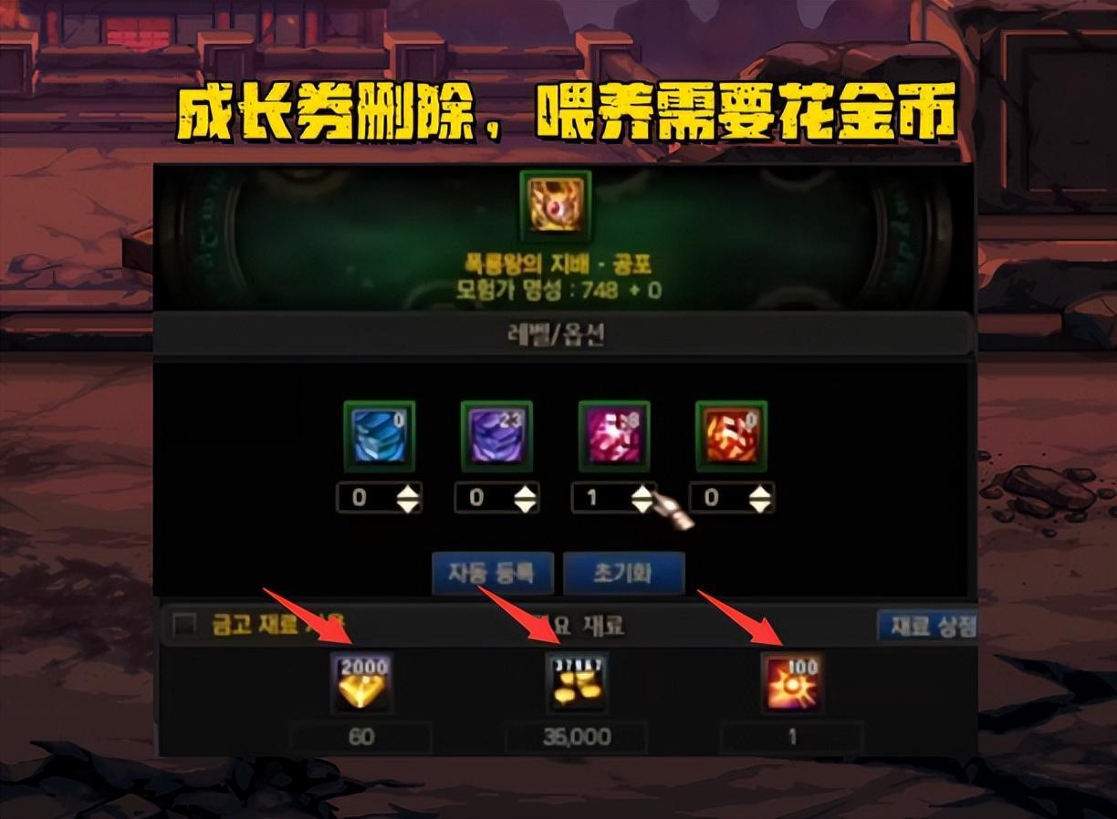 但是改版後,“成長券”就完完全全刪除了,就算你有足夠的「狗糧+靈魂之源」,那麼也一定、必須花費金幣才能餵養!