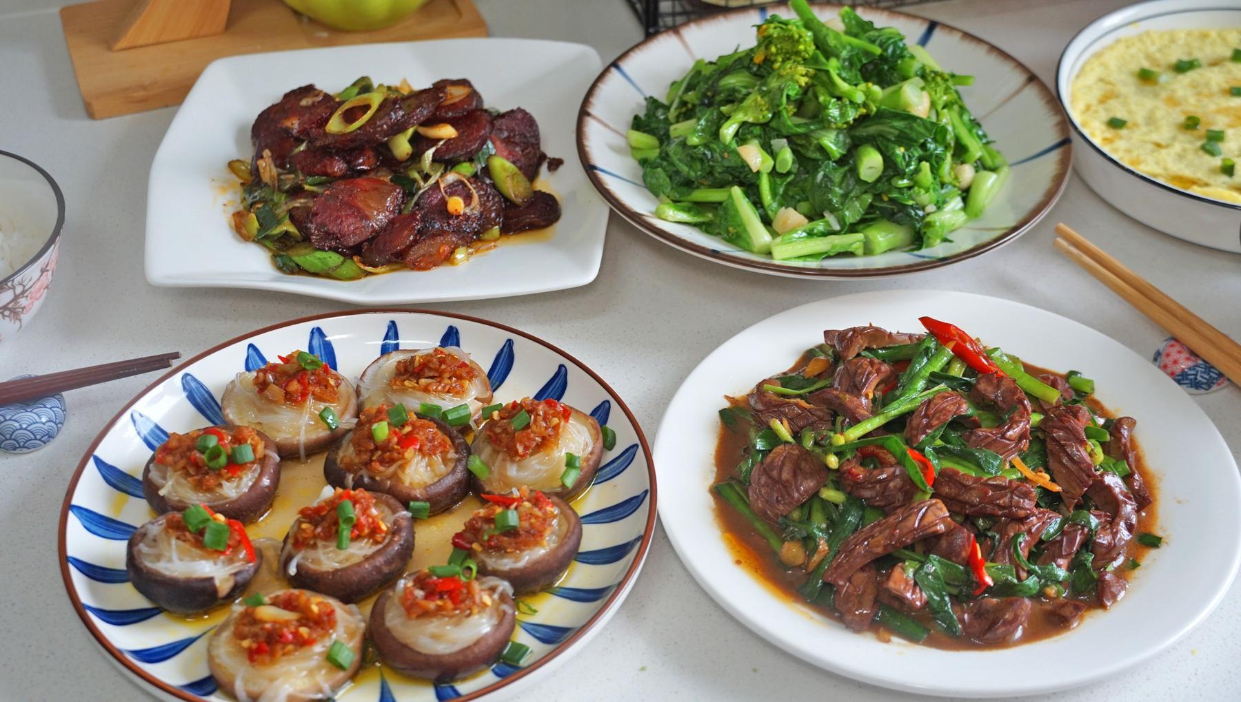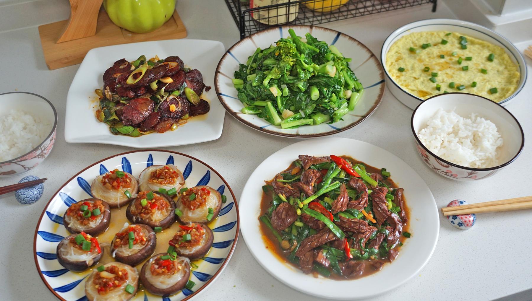 當然晚餐一個是不夠滴,另外還炒了一個香腸,素菜的話是蒸了一個蒜蓉香菇和雞蛋,還炒了一個白菜薹,這些菜都是比較簡單的,而且很快;