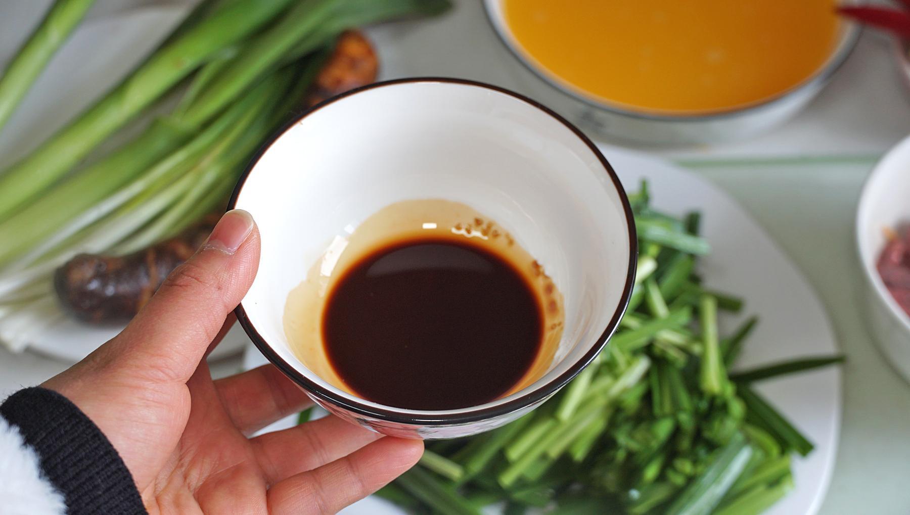 5、再調個醬汁:加了點生抽、老抽 香醋,還加了點白糖、鹽、雞精、生粉,拌勻了就可以了;