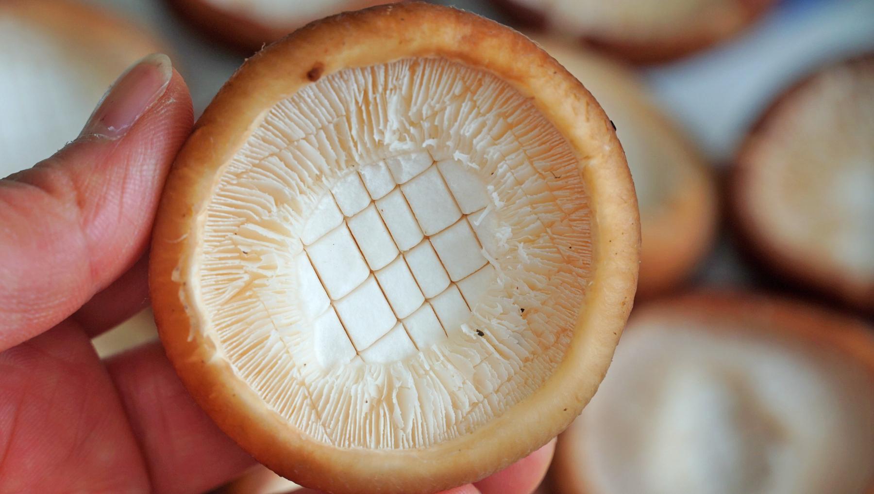 1、趁醃腰花的時間我先來做蒜蓉粉絲蒸香菇,香菇去把了打個花刀,更容易入味兒一點,焯一下水煮個兩分鐘,撈出來擺盤;