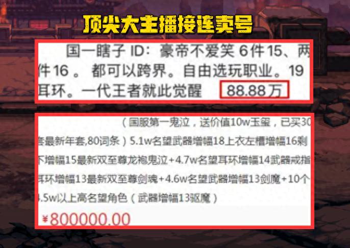 自從進入神界版本後,就出現了許多大主播接連賣號,比如: