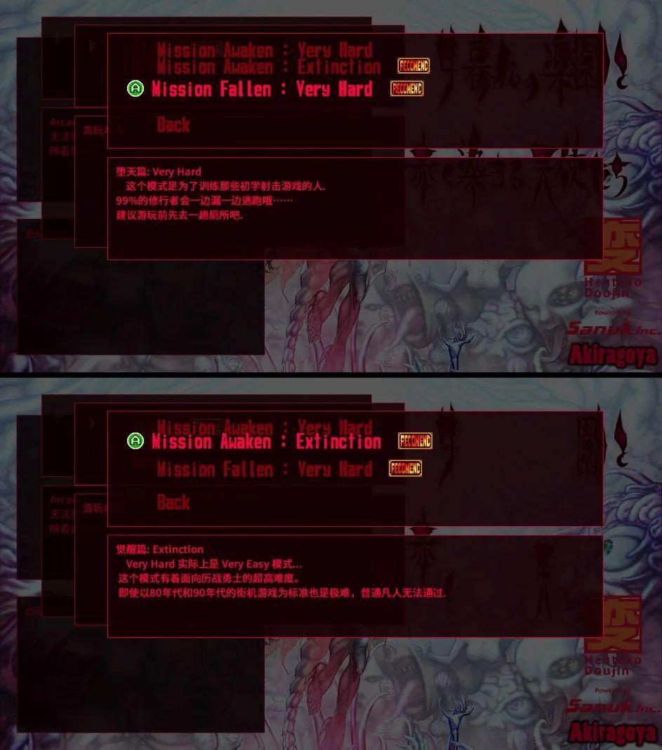 這種渾然天成的幽默同樣被他帶進了《黃昏天使》。比如遊戲的初始難度是“Very Hard”,坂葉建議你遊玩之前先去一趟洗手間。但當你完成初始難度後,他又會告訴你“Very Hard”實際上是“Very Easy”模式,你還得再接再厲, 從而鼓勵你一步步通關遊戲。