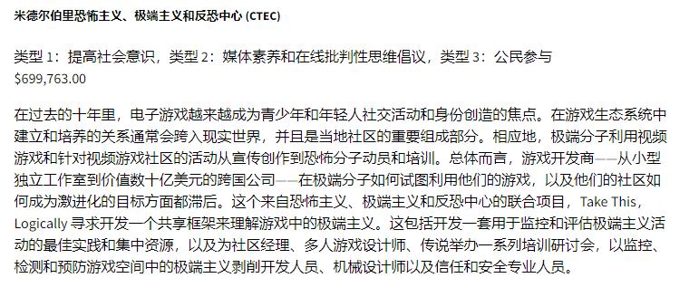 這並非是危言聳聽,早在2022年,美國國土安全部門就曾撥款70萬美元,用以開發針對遊戲領域的反恐方式。