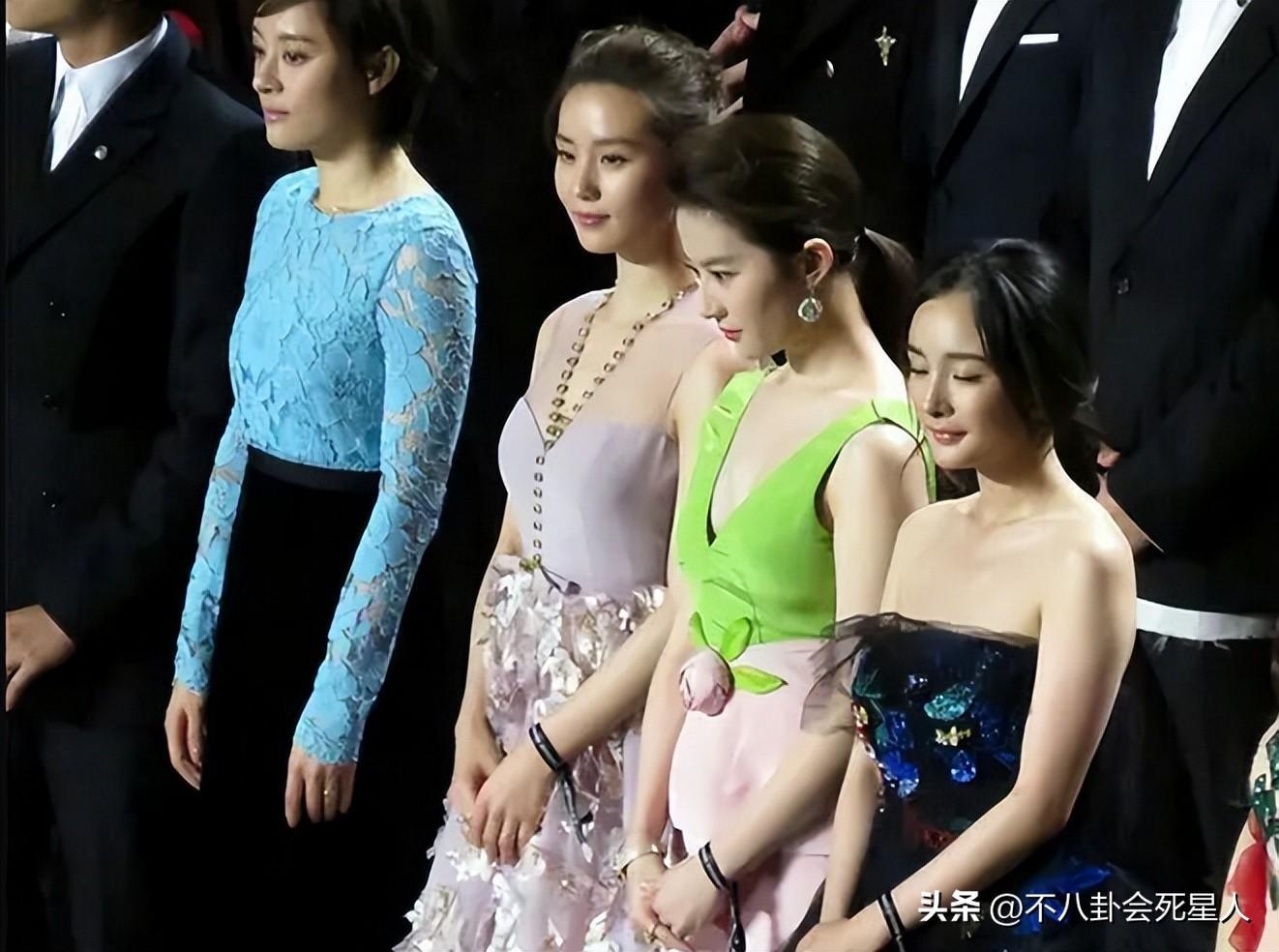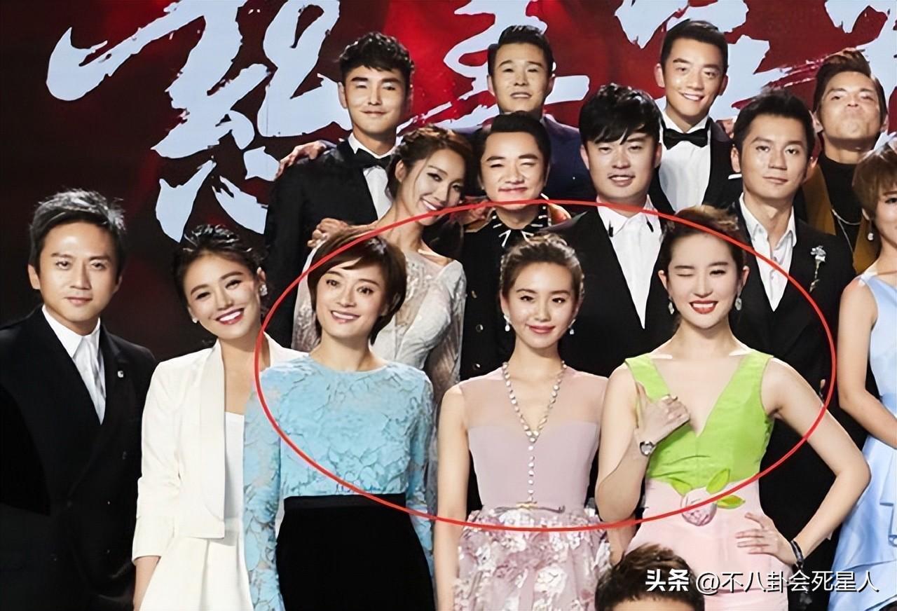 比如這張她和劉亦菲,劉詩詩等女星的大合照,其實劉亦菲只比孫儷小5歲左右,但兩人給人感覺差別很大,孫儷那時的臉部狀態並不差,但卻被襯托得像兩個年齡階段的人。