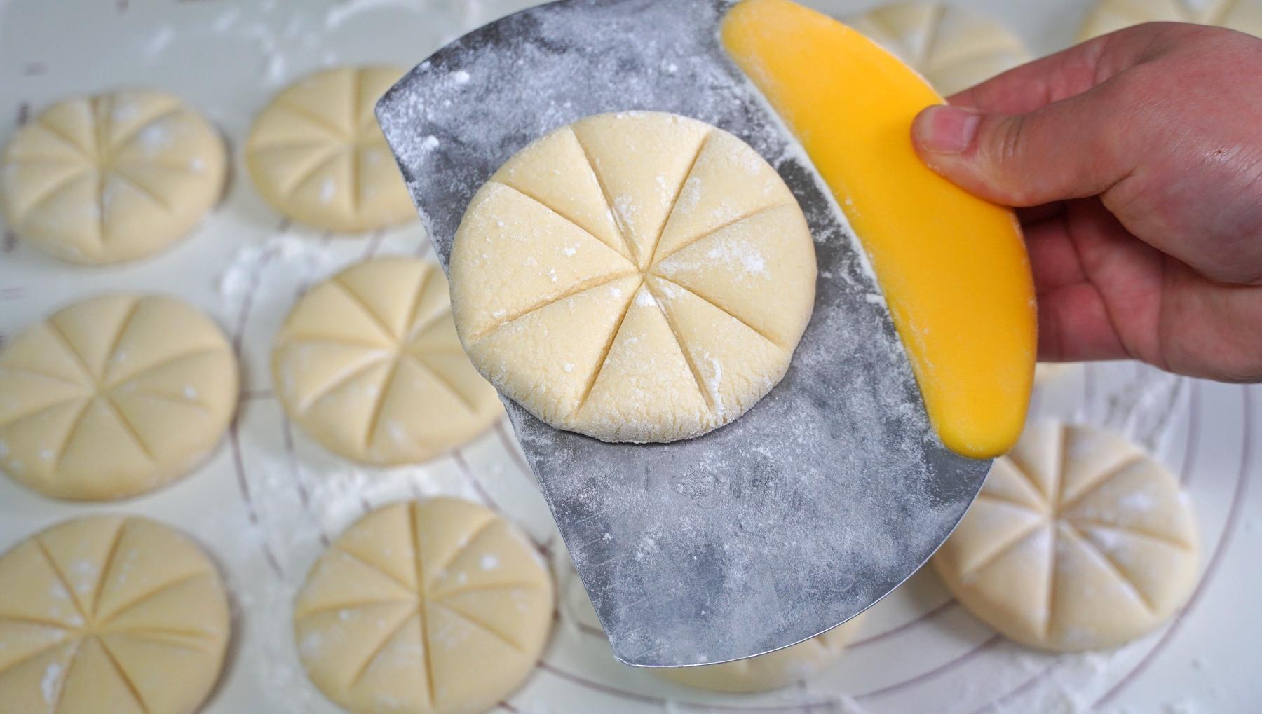 5、你想做多大的餅,就取決於你現在分多大的面劑子,撒點乾麪粉防粘,再繼續揉一揉,每一個都要先揉圓,再用手掌壓一下,小餅的形狀就出來了;