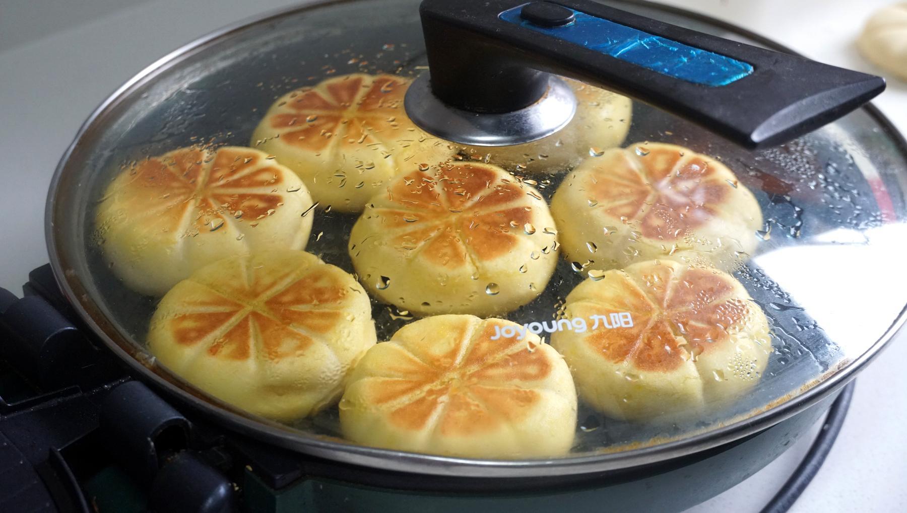 3、加熱的過程中麪餅還會稍微鼓起來一些,這就是發麪餅的口感了。