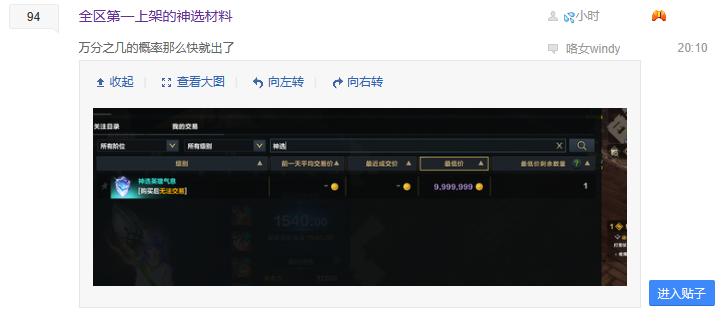 像是隨着新難度副本上線的稀有強化材料“神選英雄氣息”,一旦在拍賣行裏出現,以及價格發生的波動,都會在玩家間引起熱烈討論
