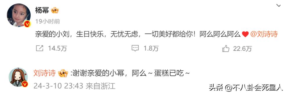 爲什麼說是“避嫌”,因爲楊冪在楊穎生日時保持沉默,但沒多久劉詩詩生日時她就高調發動態爲好友慶生了,對比非常明顯。