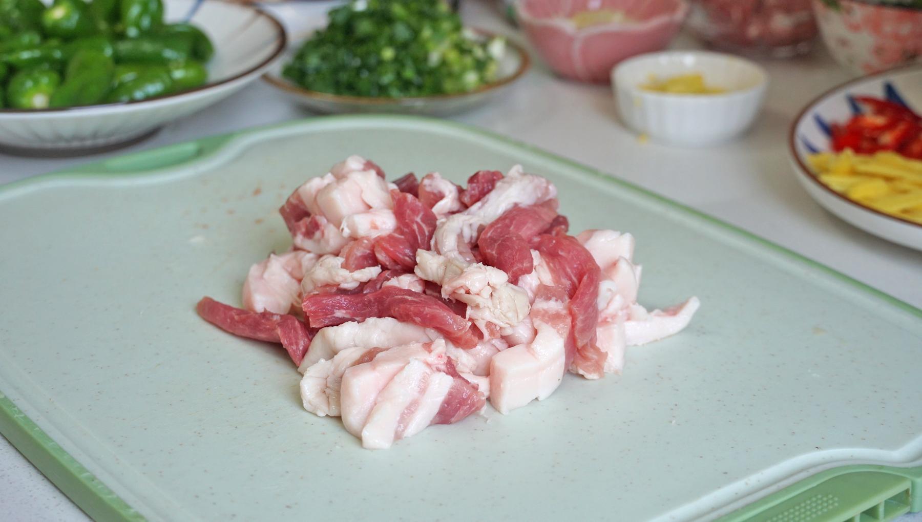 1、先來炸小酥肉,我沒有炸多少,主要就是解解饞,用了半斤五花肉,切小長條就行;