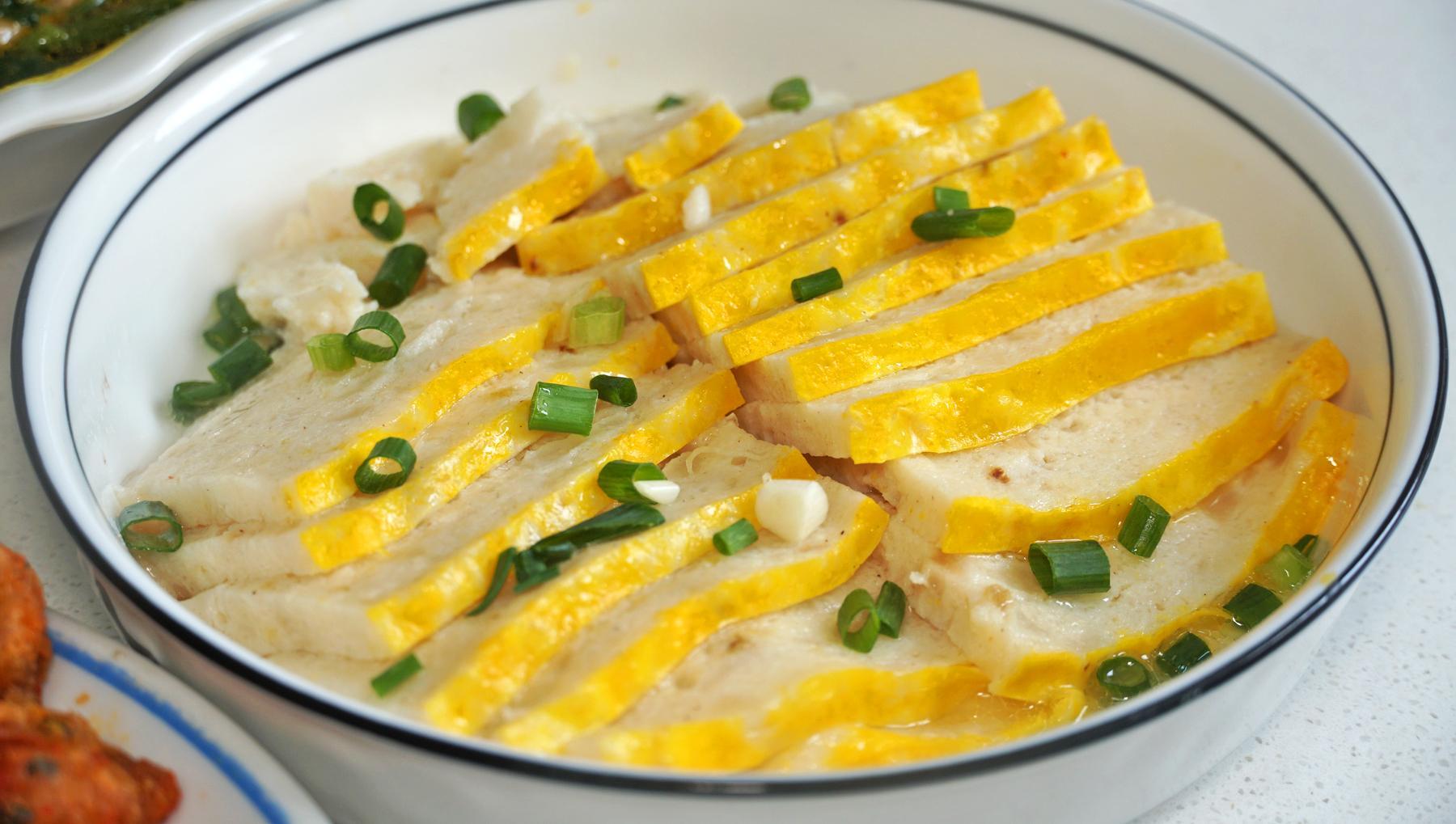 魚糕今天沒有煮,切塊兒了直接放鍋裏蒸的,喫的時候撒了點蔥花,也很好喫,魚糕是我們湖北這邊比較愛喫的,無論是煮火鍋還清蒸,都很受歡迎的;