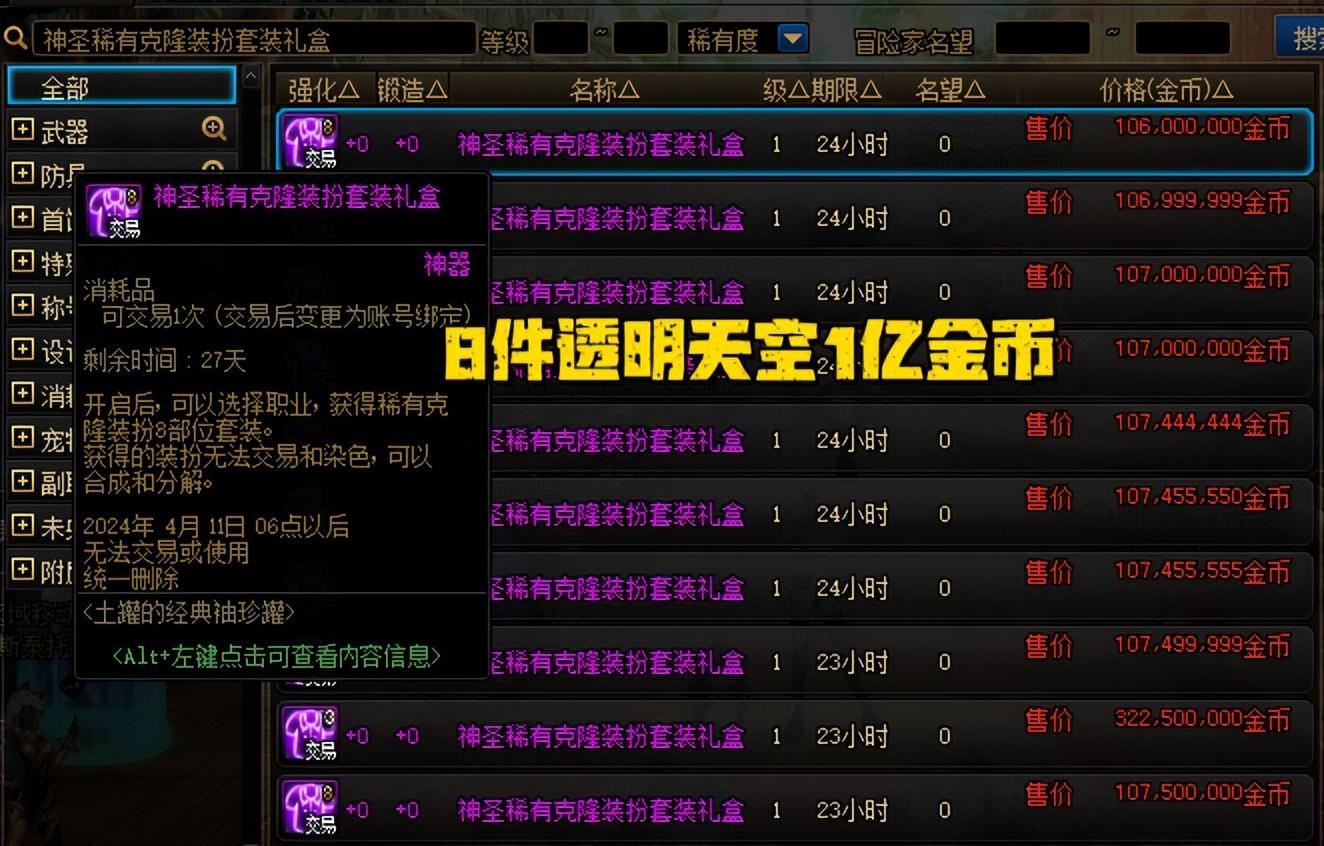 DNF:最便宜時裝來了!魔盒大降價,透明天空1億金幣起