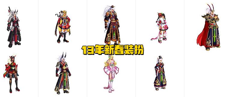 打開後可以從“13新春套”和“15新春套”中選擇一套時裝獲取,均爲8件套裝扮,可分解、可合成、可染色。