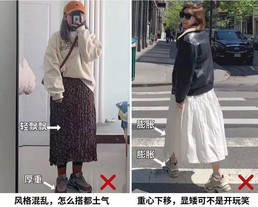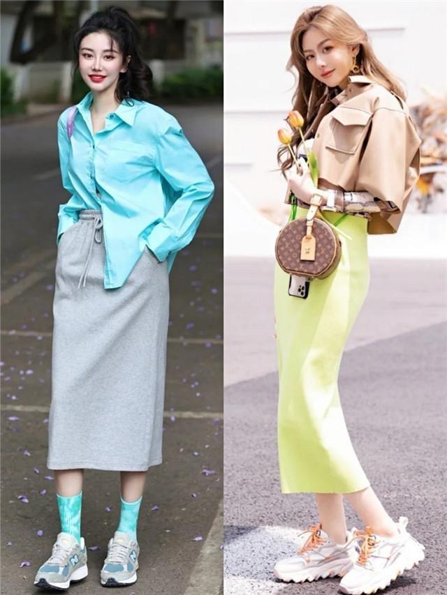 裙襬太寬鬆的半身裙,搭配老爹鞋很容易顯得土氣、顯矮,所以更推薦大家選擇線條感流暢的直筒裙,小個子也能輕鬆駕馭。
