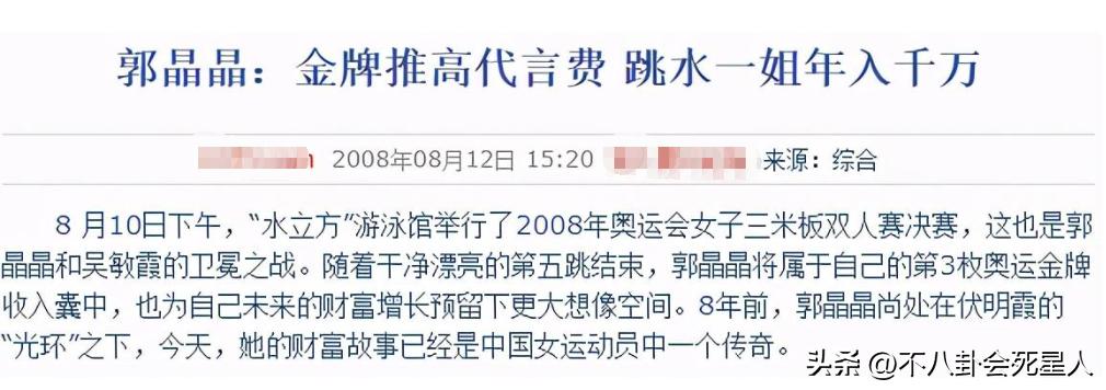 郭晶晶雖然出身“平民”家庭,但她可是“世界冠軍”,這不僅僅是一個頭銜還是一個能讓她真正賺到錢的職業。據悉,郭晶晶在結婚前靠着代言等已經年收入超過千萬,是富豪榜上的常客。