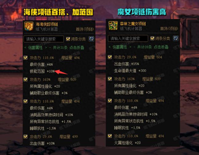 “海俠項鍊”對比“魔女項鍊”,傷害低了0.5%左右!