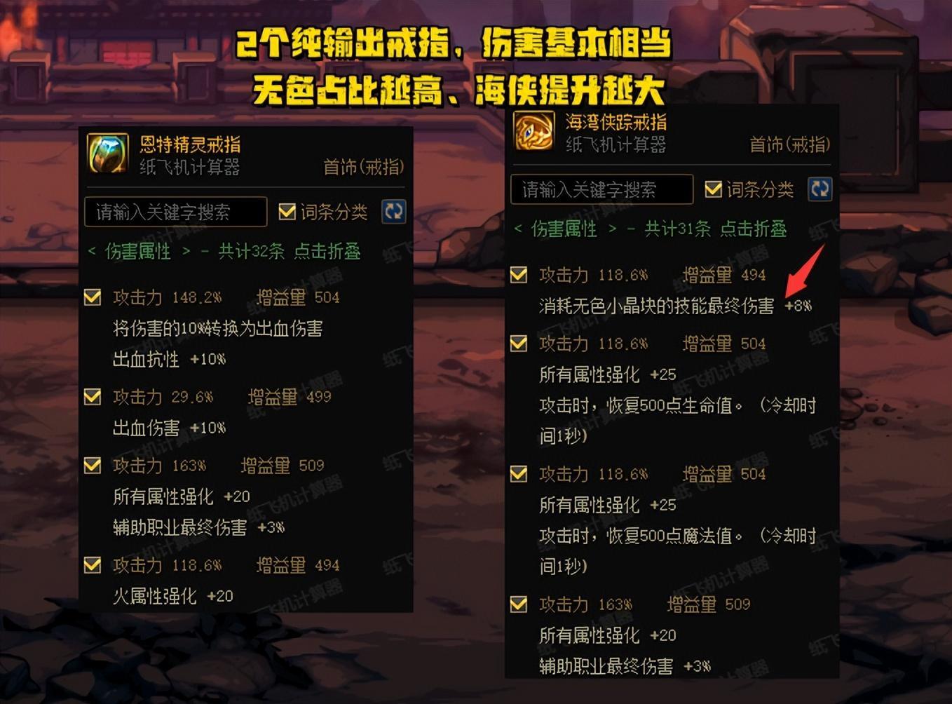 “海俠戒指”對比“恩特戒指”,傷害基本持平,如果無色佔比高的話,那麼傷害還更高!