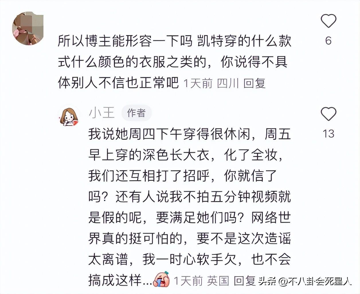 對此,一部分網友希望小王說得話是真的,這意味着凱特安然無恙。