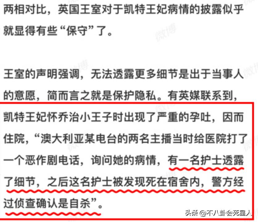 可護士自殺事件放到現在,不少網友嗅到一絲陰謀的氣息,畢竟英國王室“最帥駙馬爺”也自殺了,而自殺的原因,坊間傳聞也是他向凱特孃家人,說了一些關於凱特王妃的祕密。