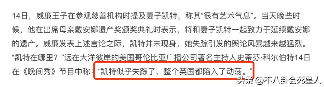 就連美國媒體都在節目中公開表示:凱特王妃似乎消失了,整個英國都陷入了動盪。