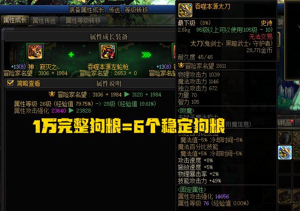首先說一下“餵養改版”的內容,主要是用“狗糧”替代“史詩裝備”,以後各大副本的史詩爆率就很低了,而且就算爆出來,也只是lv1級的,完全沒有餵養功能了;