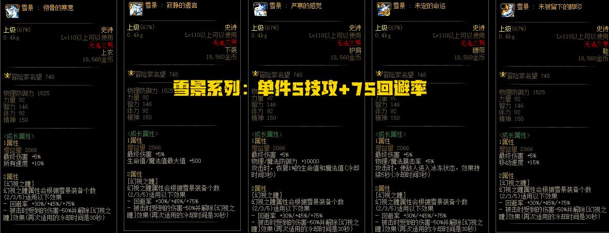 【4】“雪景系列”,每件貼膜+5%技攻,套裝效果額外觸發迴避率,最多可增加75%迴避率!