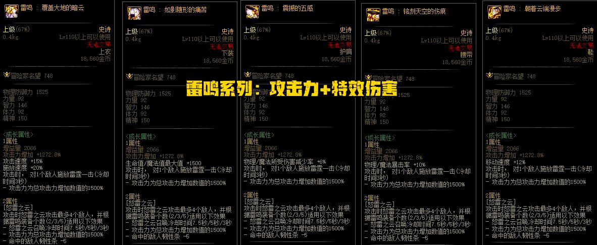 【2】“雷鳴系列”,每件貼膜+1272.8%攻擊力,攻擊可生成雷霆一擊,套裝效果可加快削韌速度。