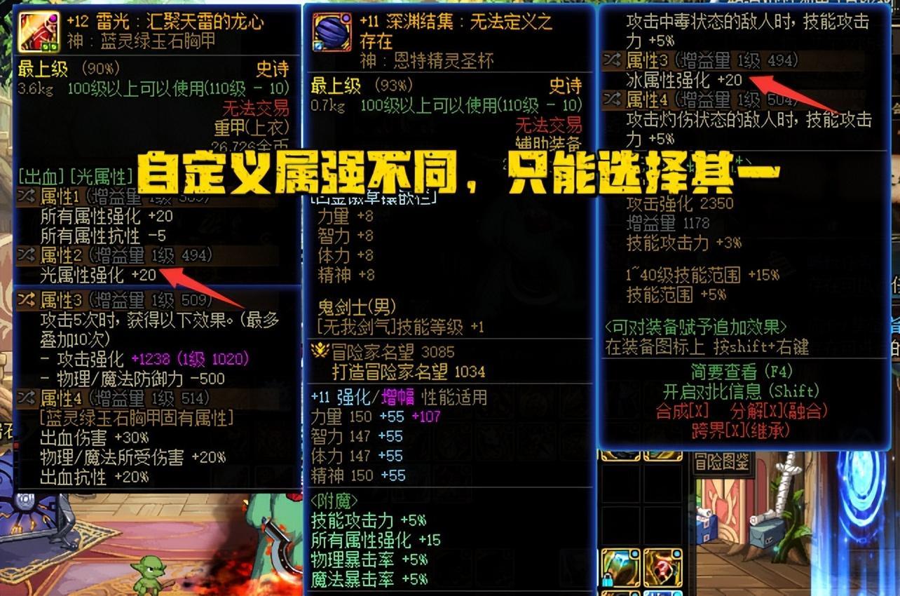 坦白來說,神界版本開放到現在,大部分玩家應該多多少少都有好幾件完美自定義了,屬強也就基本確定下來了,你也不太可能爲了一件自定義去更換全部屬強,如果需要,那還不如換一件自定義呢。