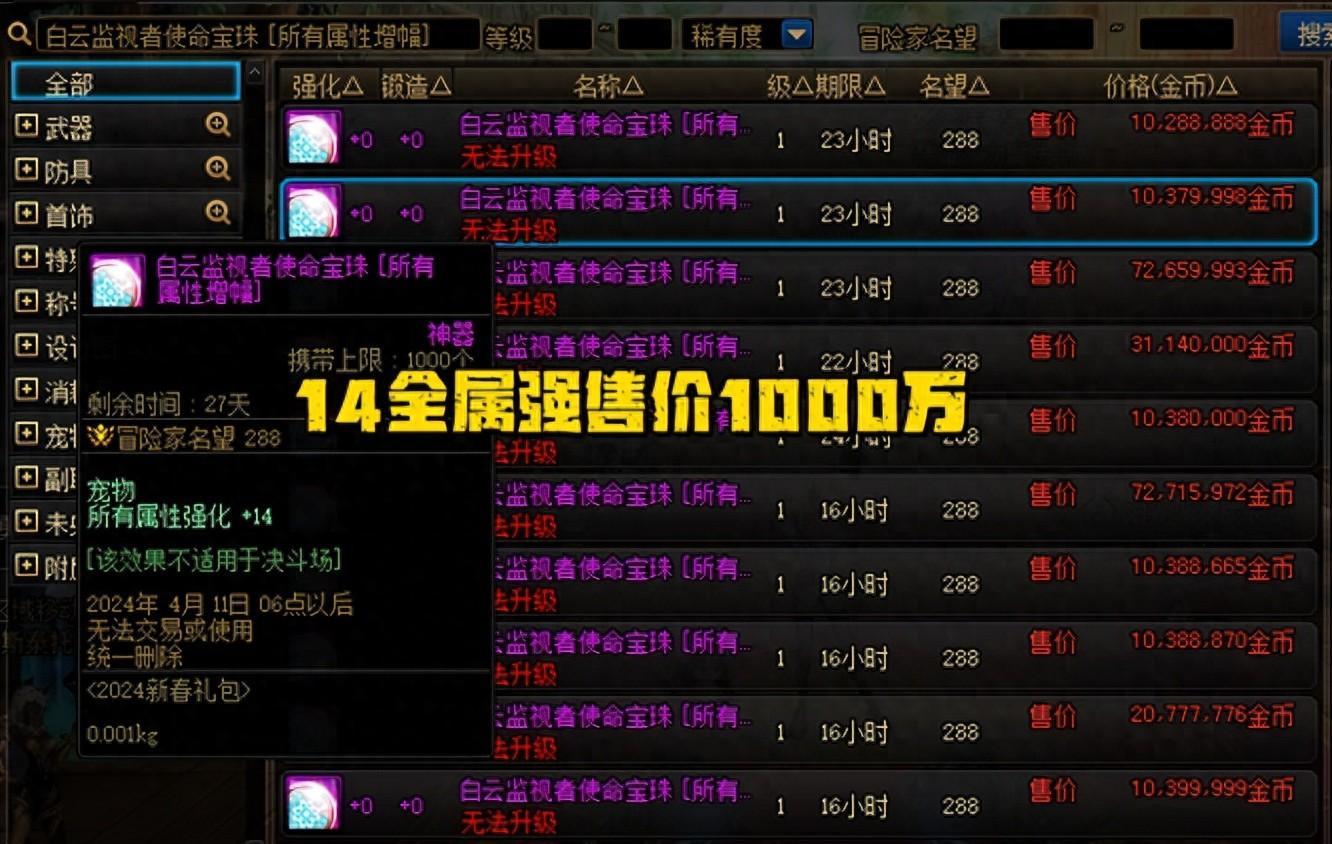 14全屬強寶珠,售價1000萬金幣!