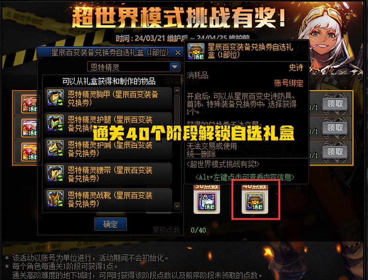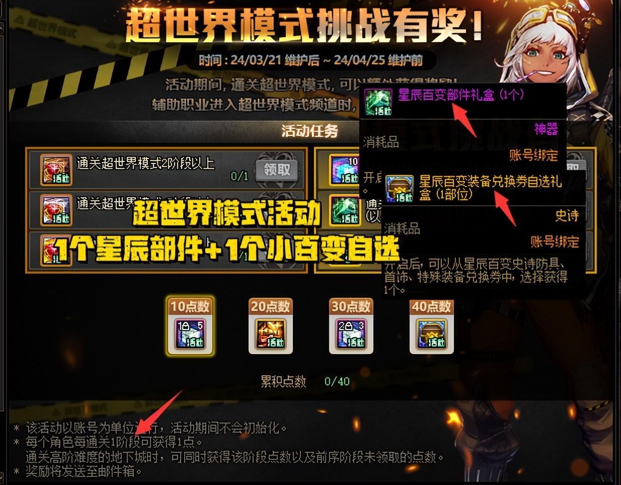 第二件從“超世界聯動活動”中獲取。4人組隊通關可以拿到1個“星辰部件”,活動累計點數達到40點可以拿到1個小百變自選禮盒。