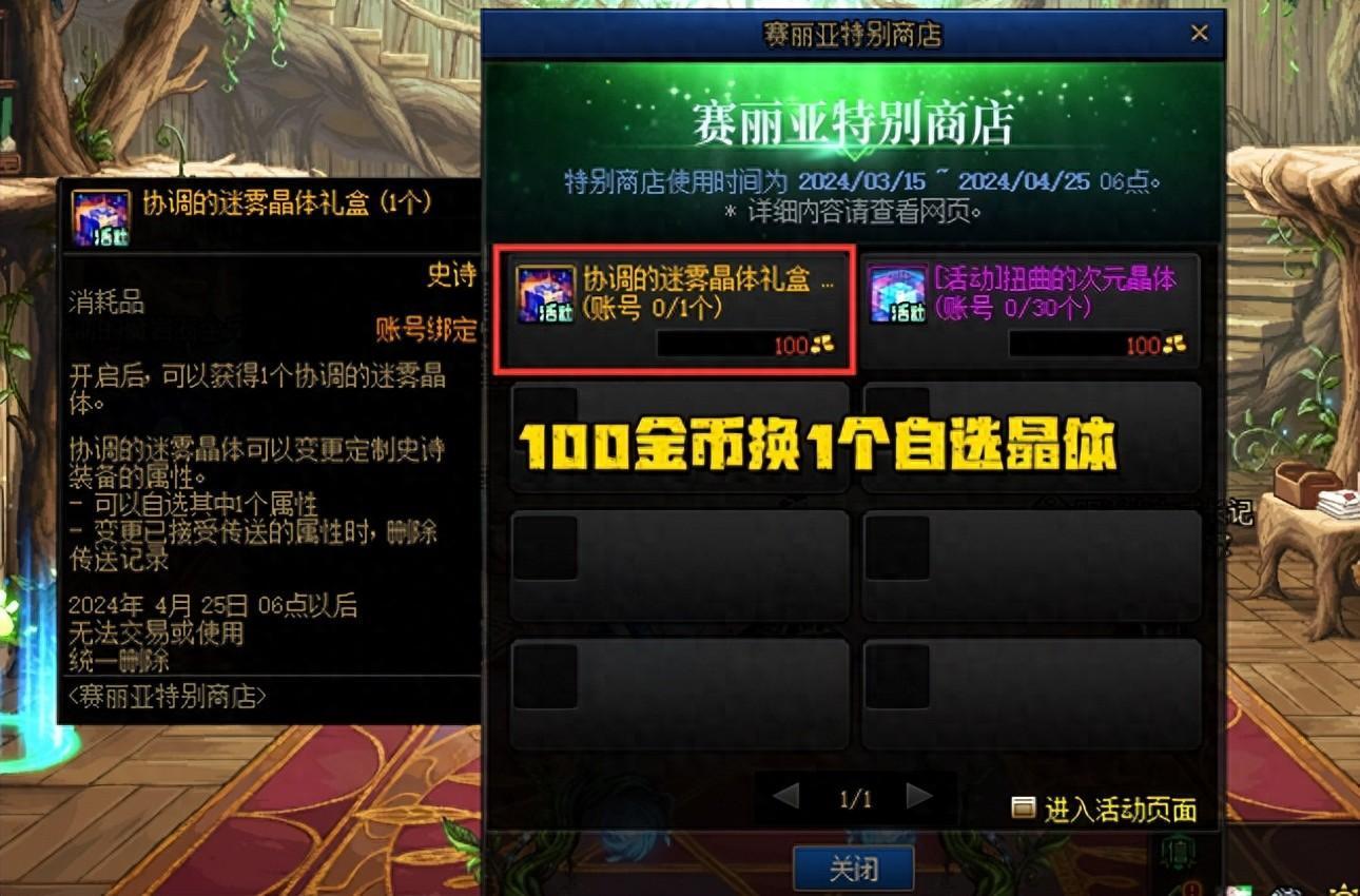 第一件在賽麗亞特別商店中獲取。花費100鉅額金幣購買一個“協調晶體”,也就是我們俗稱的“自選晶體”。