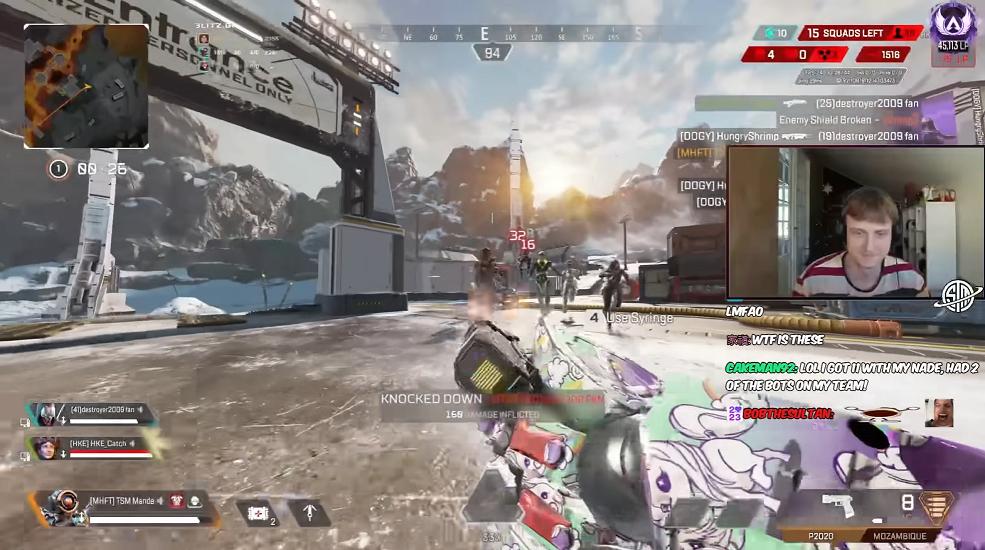 他的狙擊外掛能在常規模式下放出AI控制的喪屍來,圖源TSM成員與Twitch主播Mande