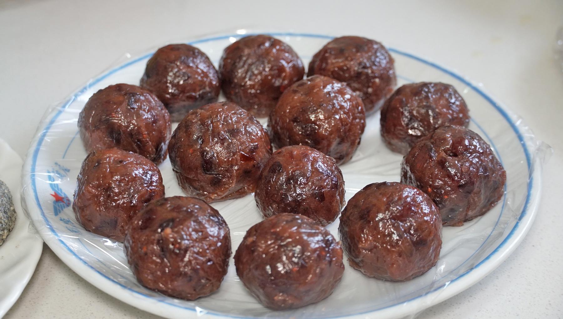 2、紅豆餡兒裏面我加了一點蔓越莓餡兒,兩種混到一起的,沒加糖,口感就很甜;