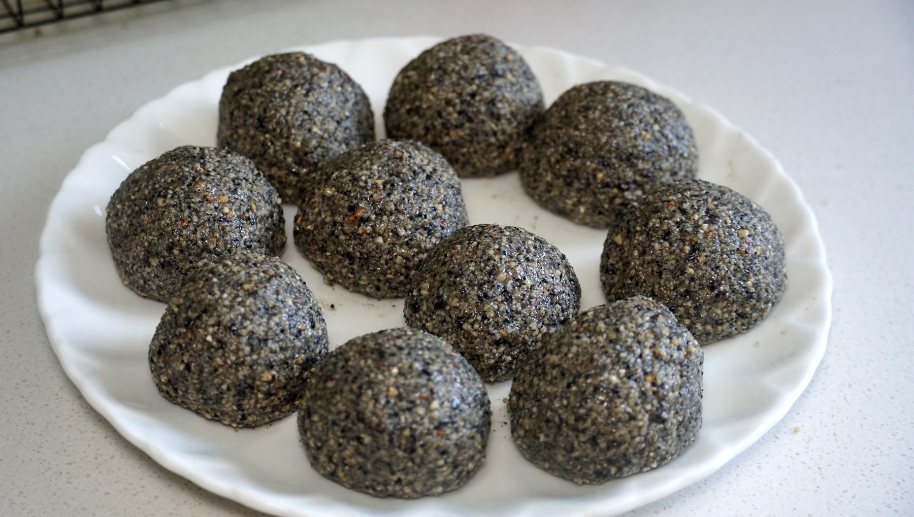 1、今天是做了一點黑芝麻餡兒和紅豆餡兒,黑芝麻餡兒就是熟的和芝麻和花生一起打碎,再加了點白糖和豬油,拌勻後搓了一下,和上次做湯圓包的黑芝麻餡兒是一樣的做法,做好了放冰箱冷凍一會兒;