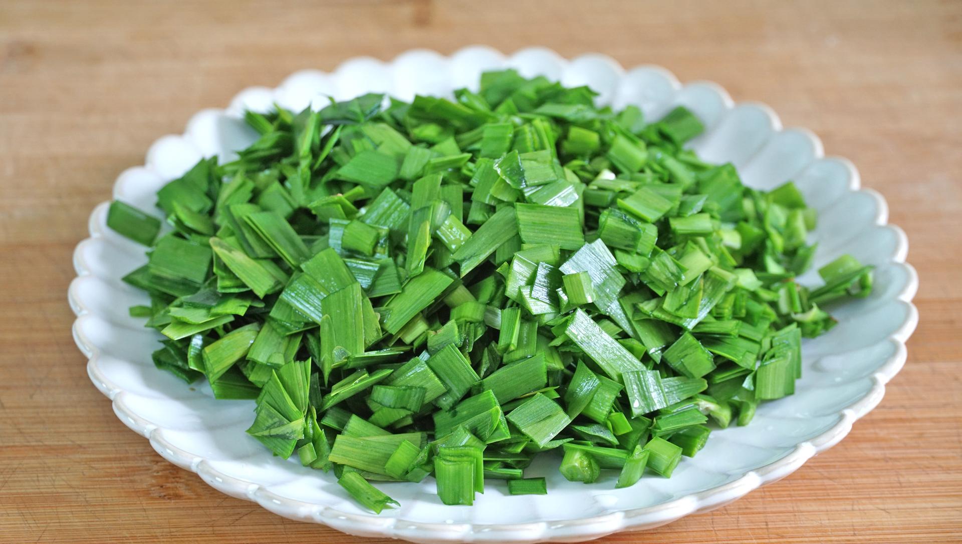 6、韭菜1把,洗淨後晾乾水分,然後切碎末備用。