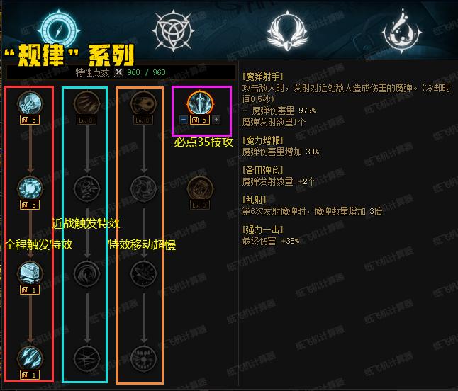 “規律”有3排天賦可選擇,“左1”傷害最低,但可以全程觸發;“左2”傷害較高,但只在玩家周圍觸發,適合近戰職業;