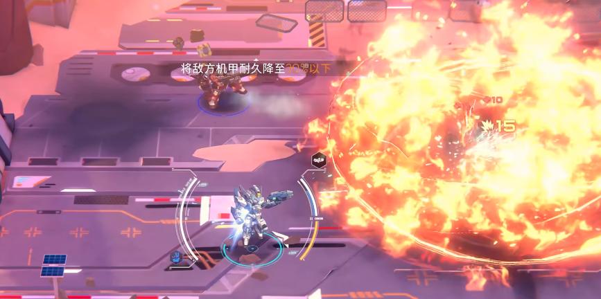傳統斜45度視角會給機甲帶來8個朝向,如果爲每個朝向都設計相應的模型面,無疑會給美術和技術實現造成壓力,而機甲類遊戲既包含了近戰格鬥和遠距離的槍械射擊,市面上常見的“類快打旋風”的手遊,在角色縱向移動自由度會非常受限,一些視角下將很難處理機甲手臂朝向、子彈顯示問題。