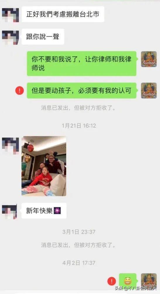 汪小菲曬出的照片證據裏,有非常搞笑的一條:大S把汪小菲拉黑了,但是在元旦那一天,大S又把汪小菲從黑名單裏放出來,給汪小菲發了一張一家四口的照片,只不過爸爸從汪小菲換成了光頭。