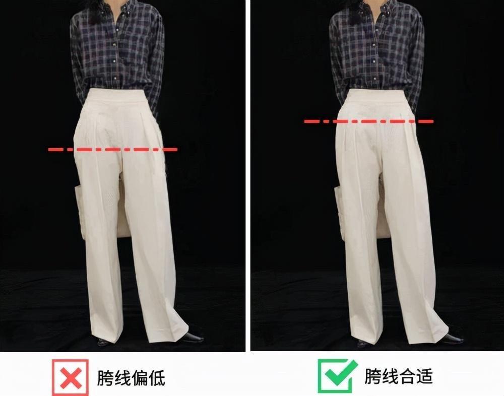 其次,我們挑選的闊腿褲大小也很重要,尤其是褲裝的胯線位置,千萬不能太低,否則容易顯腿短還不夠美觀。胯線合適的闊腿褲,在視覺上更顯腿長,而且還更有利於優化身材比例。無論你是小個子還是五五分身材,都要避免胯線太低的褲子。