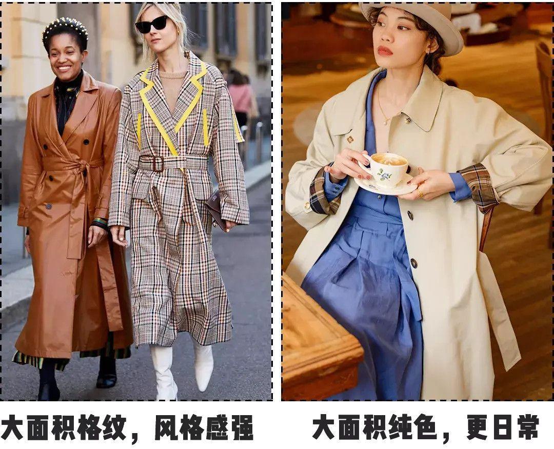 風衣在整體造型當中佔比最大,所以在挑選的時候更需要謹慎一些。對於很多追求時尚,並且強調風格感的女性來說,就很適合選擇皮革風衣,或者是大面積格紋的收腰風衣;如果你更喜歡簡約日常一點的穿搭,不妨嘗試一下大面積純色的風衣,百搭又耐看。