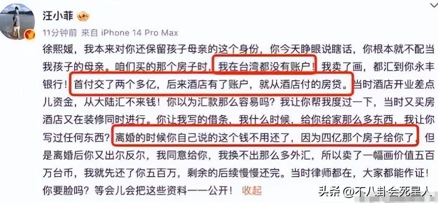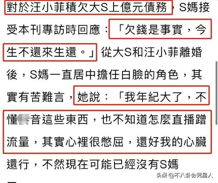 隨後大S的媽媽先出面回應,主要透露了一個重要信息,那就是汪小菲現在還欠着大S一大筆債款,高達上億元,包括汪小菲拖欠的撫養費。