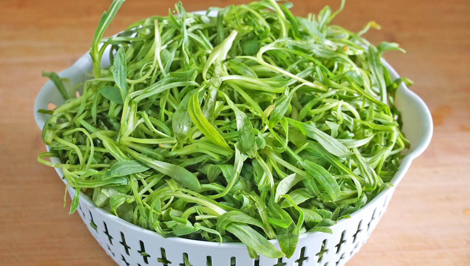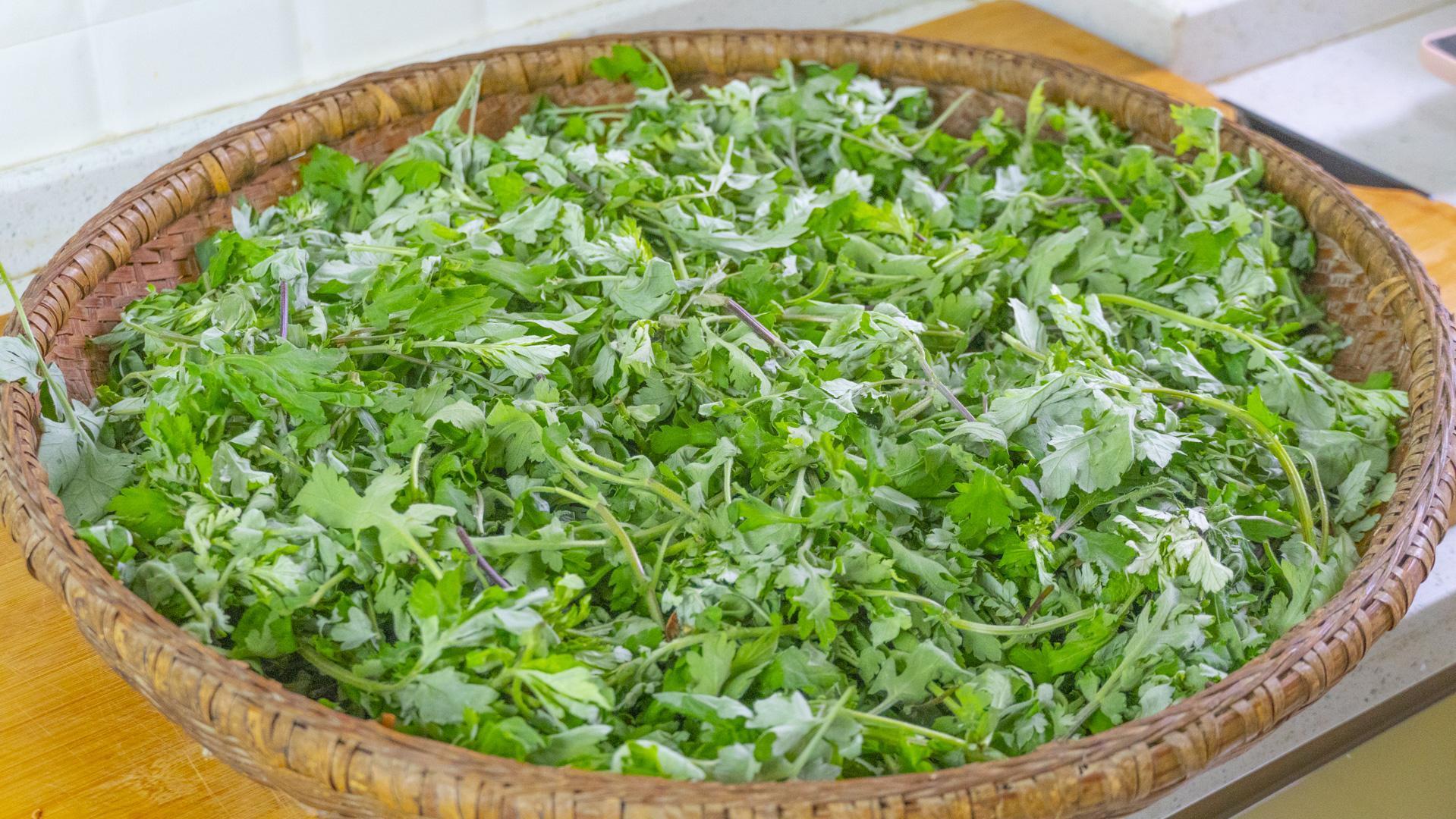 2、麪條菜一把,擇去根部和黃葉,先用流動的水清洗乾淨,然後晾乾水分。