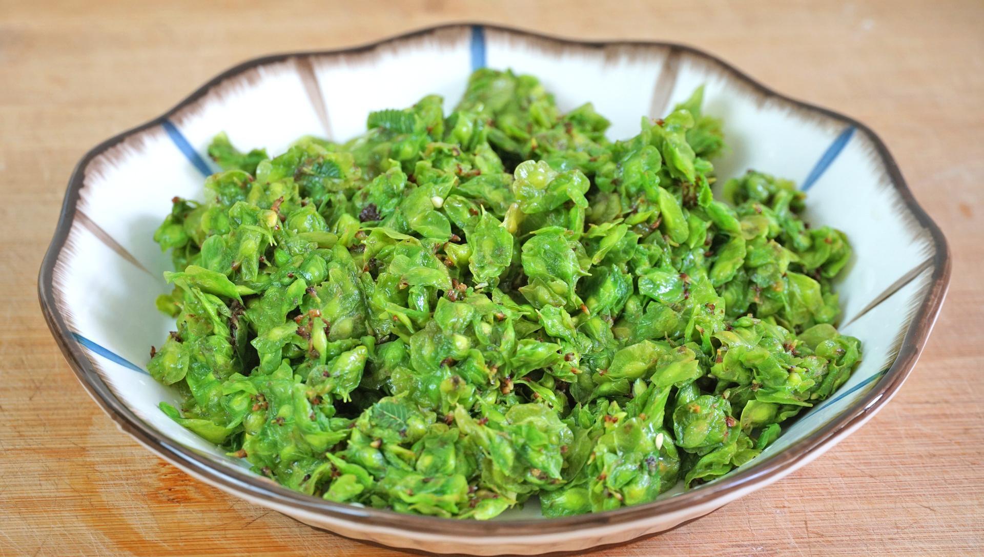 3、榆錢和槐花這樣處理後其實還可以放入冰箱冷凍保存,喫的時候拿出來解凍就行。