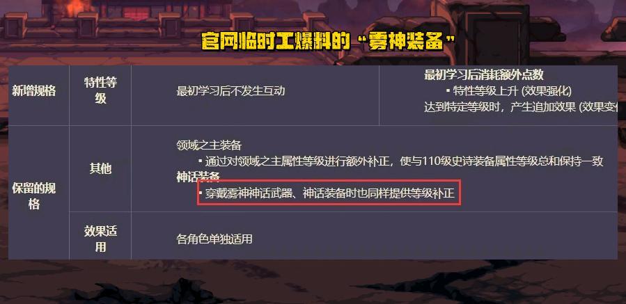 然後重點來了,下面又多了一排專門針對於霧神裝備的說明,“穿戴霧神神話武器、神話裝備時也同樣提供等級補正!”